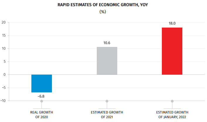 Estimated real Gross Domestic Product (GDP) growth rate in January 2022 amounted to 18.0 percent YoY.