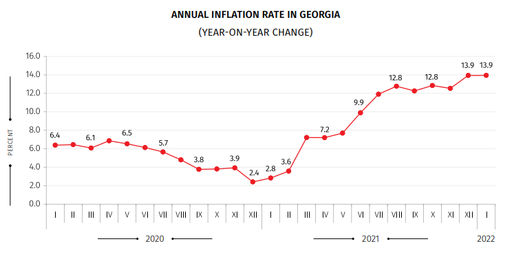 In January 2022 the Consumer Price Index increased by 1.1 percent compared to the previous month, while the annual inflation rate amounted to 13.9 percent.