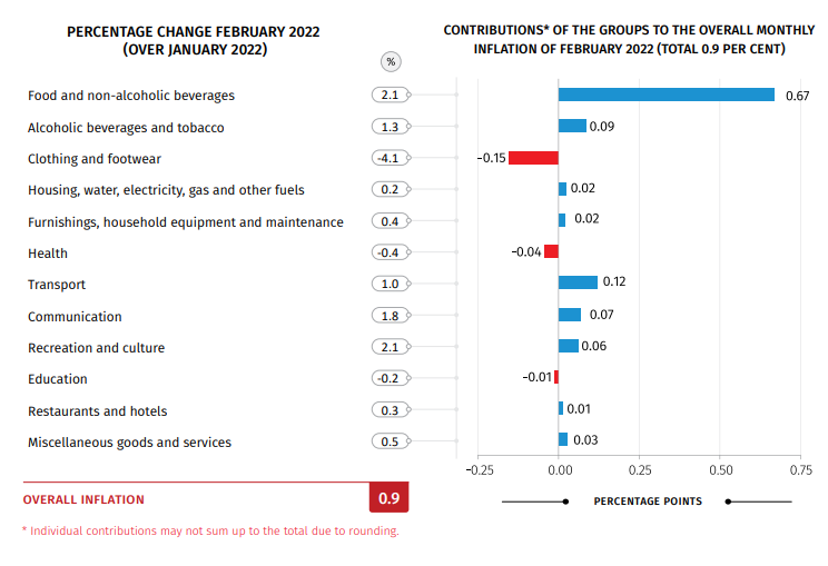 In February 2022 the Consumer Price Index increased by 0.9 percent compared to the previous month, while the annual inflation rate amounted to 13.7 percent. With regard to the annual core inflation1 ,...